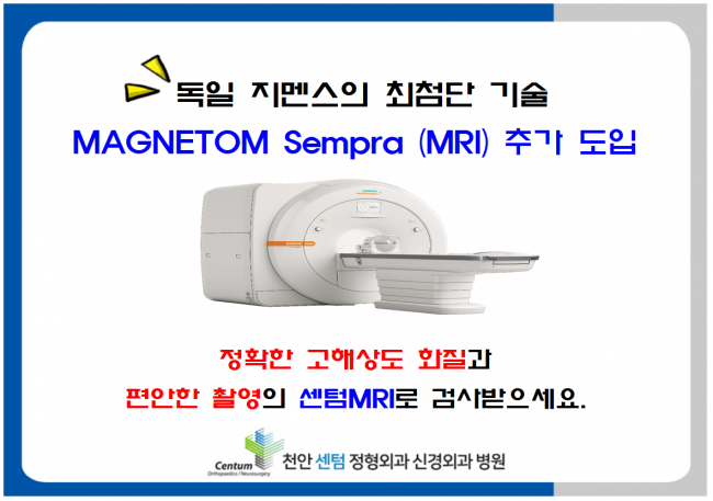 MRI장비 2호기 도입! 페이지 정보 작성자 센텀 작성일18-11-10 13:23 조회7,102회 댓글0건 관련링크 이전글 다음글 목록 본문 . 댓글목록 등록된 댓글이 없습니다. 이전글 다음글 목록