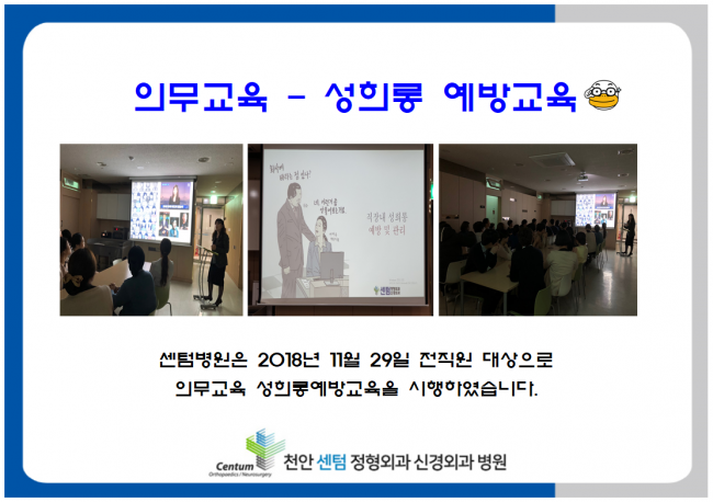 의무교육-성희롱예방교육 페이지 정보 작성자 센텀 작성일18-12-07 10:33 조회7,016회 댓글0건 관련링크 이전글 다음글 목록 본문 . 댓글목록 등록된 댓글이 없습니다. 이전글 다음글 목록